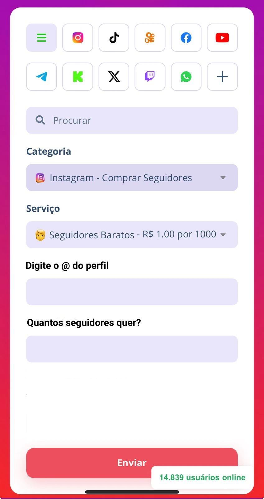 Compre seguidores, curtidas ou views para qualquer rede social.